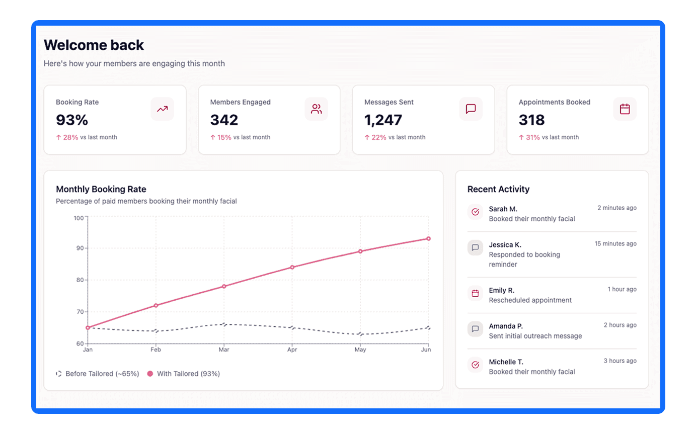 Tailored gives your business something no other platform offers: a dedicated texting line that sends and receives messages as iOS blue bubbles. Your clients see a real iMessage conversation, not a random shortcode or unknown number. On higher plans, you also get real trained human agents managing conversations on your behalf and Instagram growth tools powered by our chatbot.
